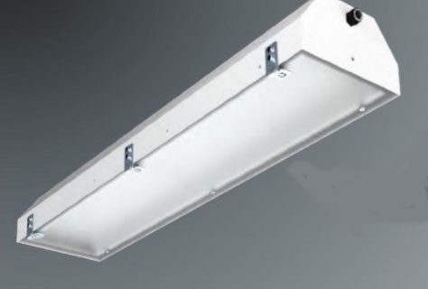 Le luminaire LED pour éclairage industriel est un plafonnier d'une robuste structure en tôle métallique avec une couverture en verre de sécurité trempé.