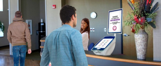Je souhaite une borne tactile d"accueil pour les patients de la pharmacie. En premier lieu pour leur attribuer un numéro de passage qui s"affiche à l"écran, mais aussi (par la suite, dans un deuxième temps) pour trier les personnes qui viennent "juste" chercher un produit commandé la veille ou au contraire ont besoin de temps au coin conseil ou d"une longue ordonnance à traiter.