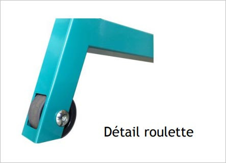 Équipée de 2 roulettes Ø50mm avec bandage polyuréthane et moyeu lisse, elle glisse silencieusement sur tous types de sols.