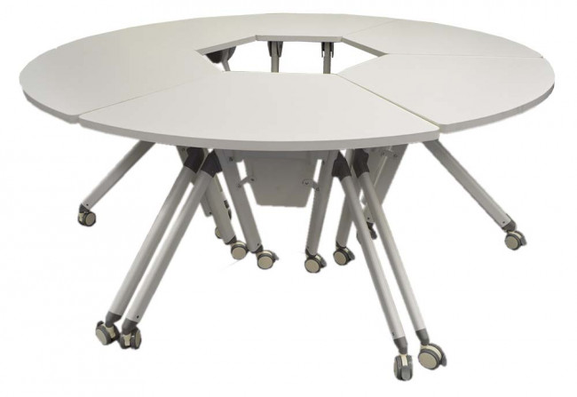 En quelques secondes suffisent pour plier et ranger la table et libérer l'espace pour passer à une autre table de configuration. Solution disponible pour tous les établissements scolaires.