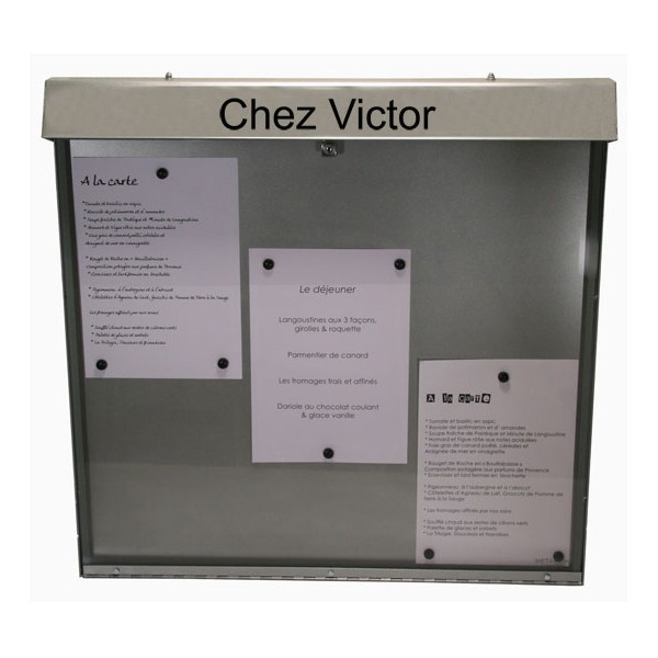 Cette vitrine porte-menu murale est pour usage extérieur, avec une capacité d'affichage pour 6 pages.