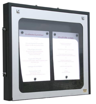 Vitrine porte-menu lumineuse parfaitement étanche à accrocher à l'extérieur du restaurant.