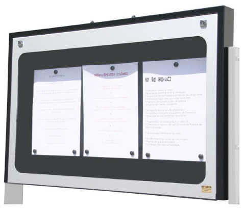 Ses vitres sont en plexiglass avec fermeture à clés, elle est livrée avec aimants pour fixation des feuilles.
