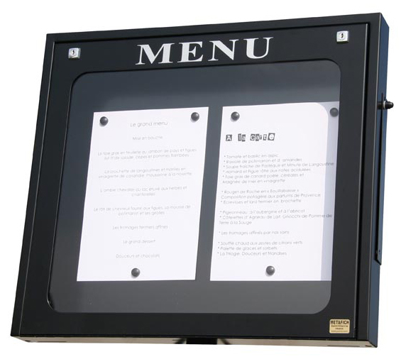 Vitrine porte-menu lumineuse simple face parfaitement adaptée pour l'extérieur.