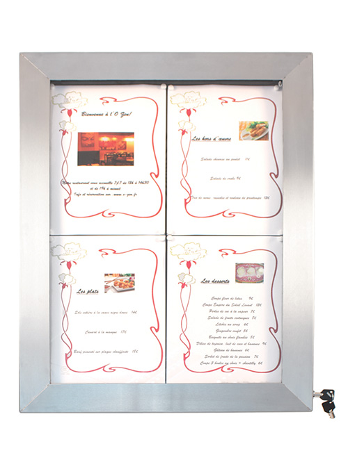 Le porte menu est doté d’un système de fermeture fiable, protégeant efficacement vos menus contre le vent, la pluie ou les manipulations non autorisées. Cette sécurité supplémentaire garantit la préservation de vos documents en toutes circonstances.