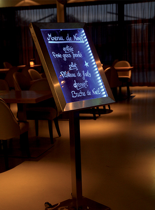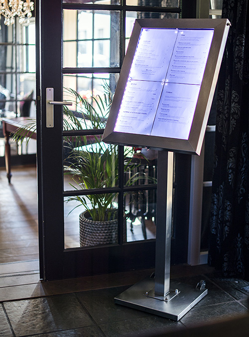 porte menu inox LED, la solution idéale pour mettre en valeur vos cartes et menus dans tous les environnements professionnels.