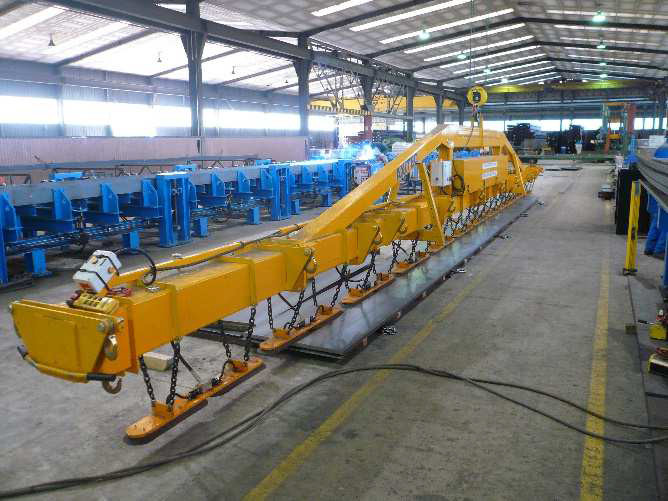 C'est un palonnier à ventouse pour la préhension de poutrelles reconstituées soudées.