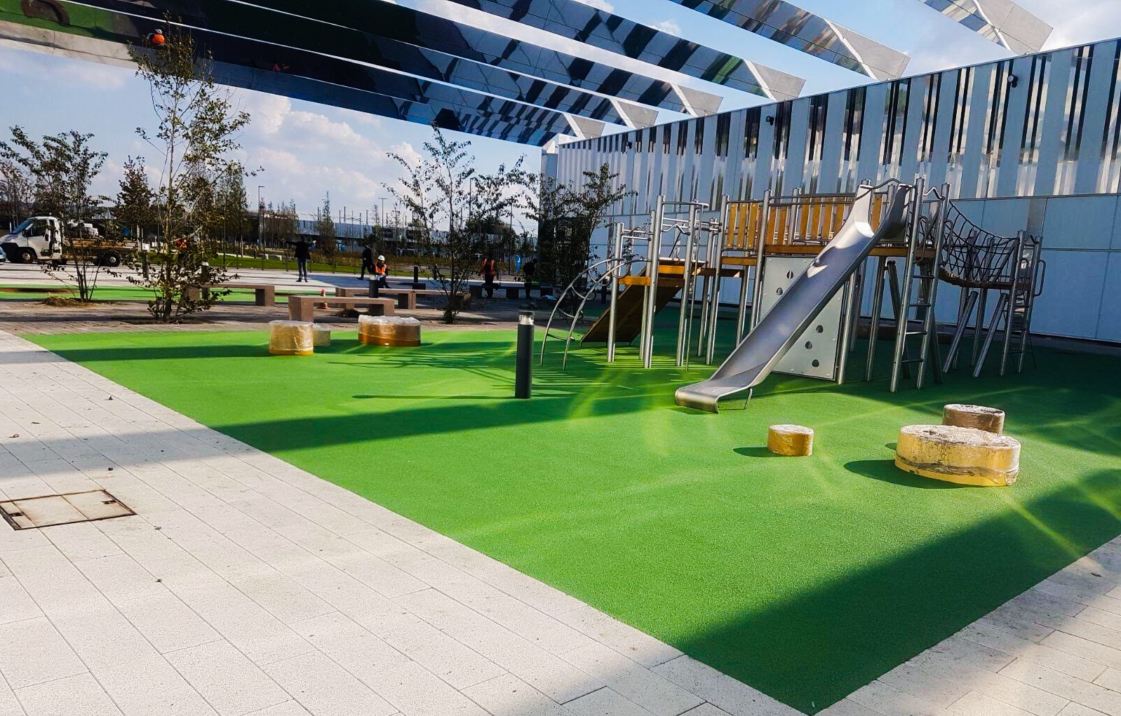 15/03/2021Sol souple aire de jeux surface 90M². Tranche d"age 3 à 8 ans.