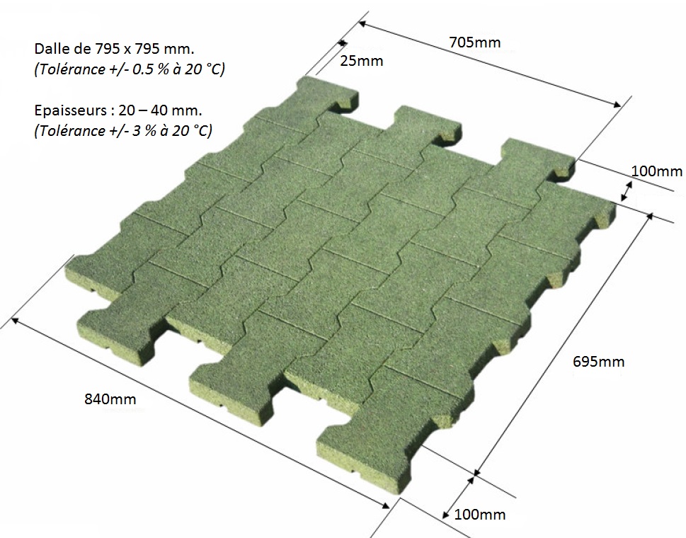 26/03/2026Nous souhaitons faire un sol de protection avec des dalles emboîtables en caoutchouc (comme dans les cours d"école) de dimension 150 cm x 150 cm avec les contours en biais (pour ne pas qu"il y ai une marche) avec les 4 angles sortants.