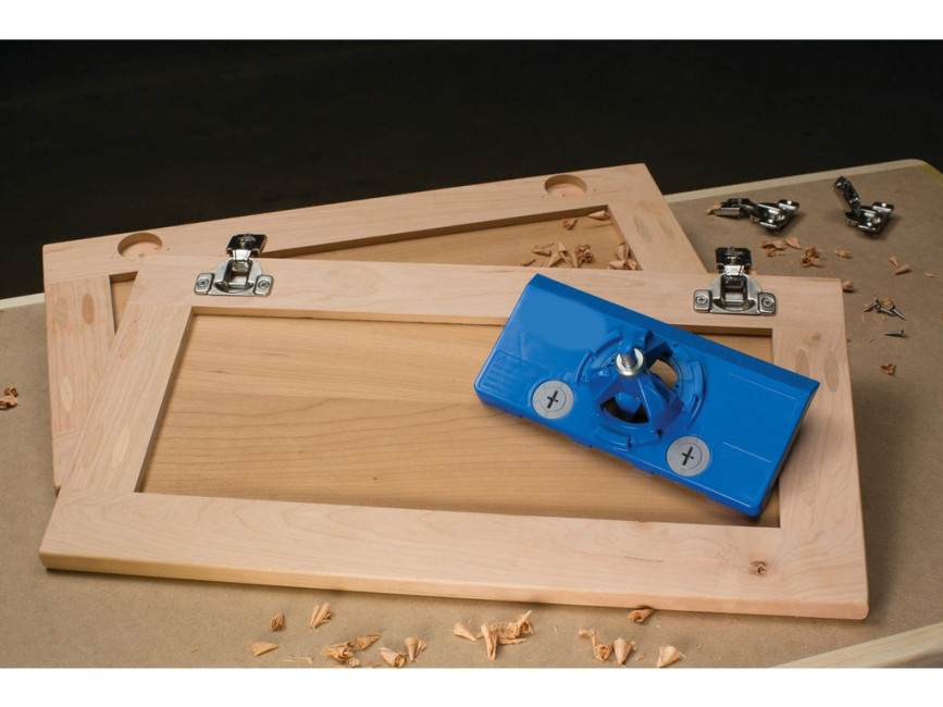 C'est un gabarit de charnière permettant de percer des trous de cuvette pour les charnières de porte d'armoire.