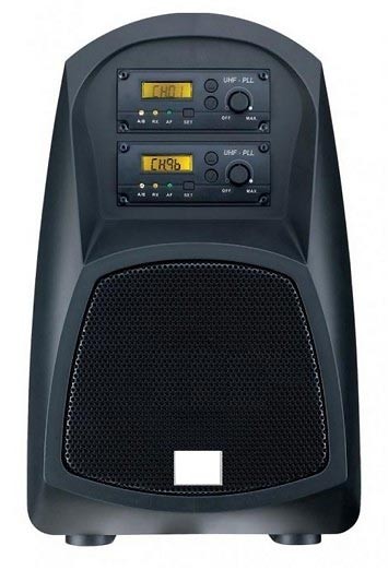 Cette enceinte peut être équipée de différentes options permettant l’utilisation jusqu'à quatre microphones sans fil.
