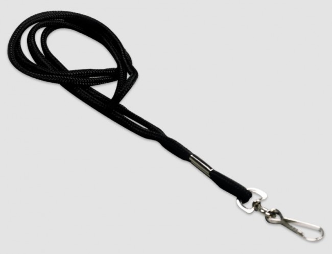 Ces cordons ronds sont conçus en polyester et dotés d'une attache de type mousqueton métallique.