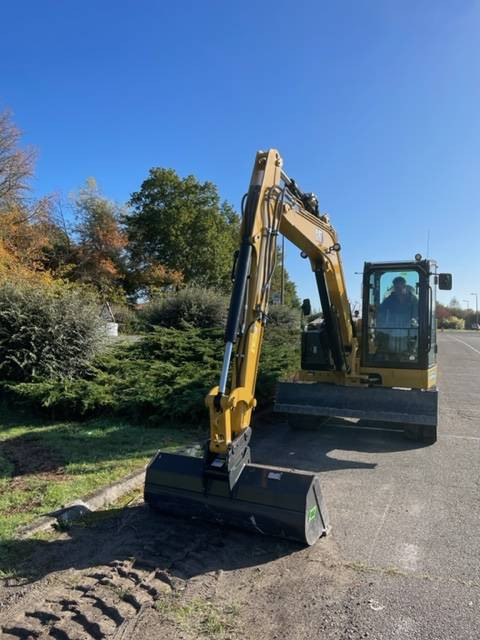 Cette pelleteuse sur chenilles en location est une machine vous permettant de creuser et déblayer un sol, déplacer des matériaux, niveler un terrain ou extraire des matériaux.