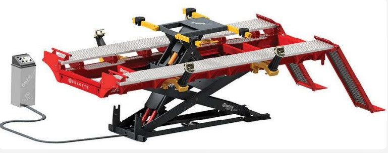 Ce marbre de redressage avec chemins de roulement est conçu pour la réparation et le redressage des structures de véhicules.