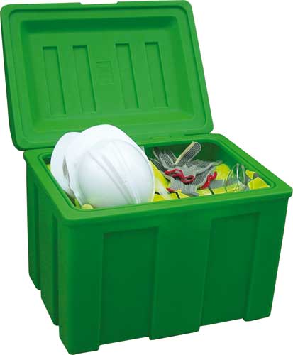 - Bac de rangement multi-usages pour le stockage en intérieur ou en extérieur du sel de déneigement, du sable, de l'absorbant, des E.P.I, des kits antipollution ou divers outillages.