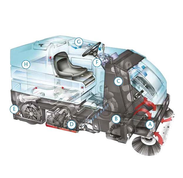 Cette balayeuse de voirie sécurisée et confortable, est très utile pour les grandes surfaces.