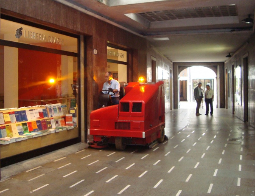 Les brosses cylindriques de 300 mm de diamètre, à rotation inversée, ainsi que les brosses latérales, garantissent un nettoyage en profondeur sur divers types de surfaces.