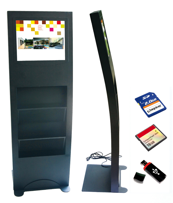 totems multimédias sont équipés de deux porte-documents et d'un écran vidéo 19 pouces