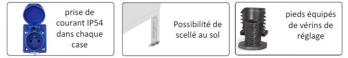 8 cases par armoire et casquette de protection en partie haute
