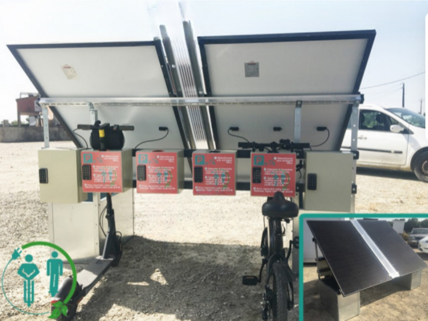 03/04/2025Borne de charge VAE et Trottinettes pour 6 EDPM ou VAE avec casiers verrouillables, alimentation photovoltaïque off grid