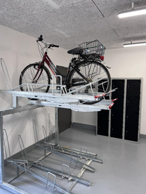 Le vestiaire Multi-cases 4 ou 8 superposées avec prises de recharge électriques est idéal pour déposer les équipements des cyclistes, cyclotouristes et autres vélo-tafeurs.