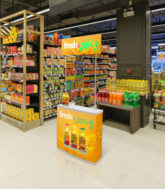 Ce comptoir pour salon est idéal pour la promotion dans différents points de vente.