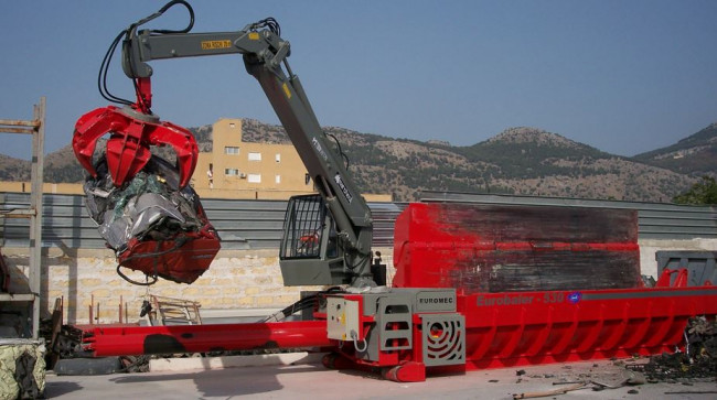 L'aplatisseur transportable EUROBALER 530 est un équipement polyvalent conçu pour répondre à vos besoins de mise en paquets de véhicules hors d'usage (VHU) ainsi que pour compacter les ferrailles légères.